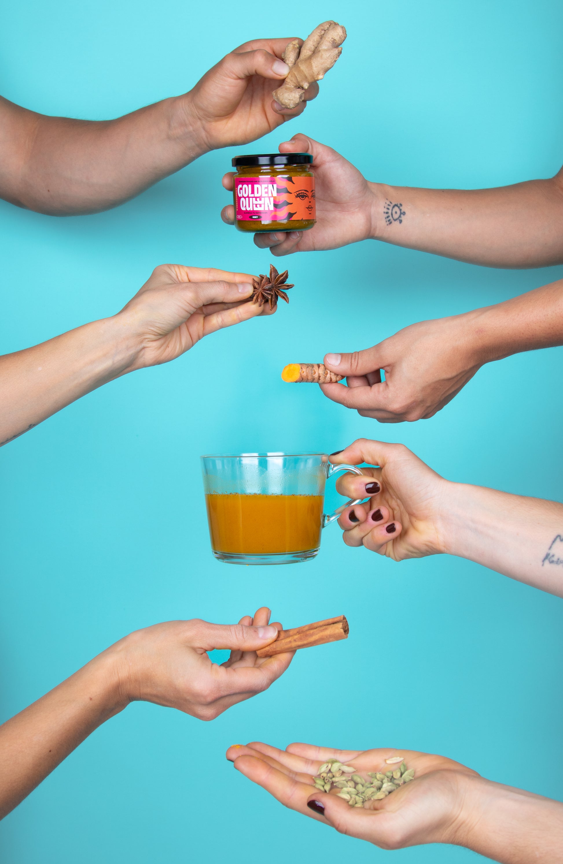 Elaborado artesanalmente en Chile, con miel 81% de ulmo orgánica, rica en propiedades antibacterianas, mezclada con cúrcuma, jengibre, canela, pimienta negra, cardamomo y anís estrella. Cada ingrediente ha sido cuidadosamente seleccionado para potenciar los beneficios de la cúrcuma y apoyar tu sistema inmune, digestión y bienestar general.